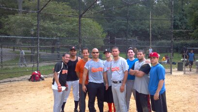 setting a new http://sites.google.com/site/inwoodsoftballleague/ record for the largest & ggreatest comeback ever by scoring 11 runs to tie the game in the bottom of the 7th and then eventually winning the contest in the 8th. Insane. Another lesson for an umpire - never say or think the word mercy - Never